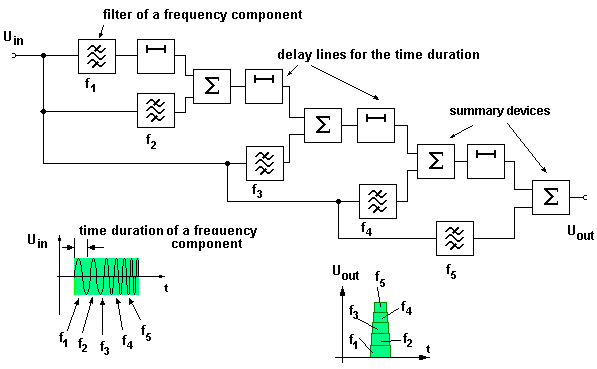 frequency components so that a narrow or compressed pulse is