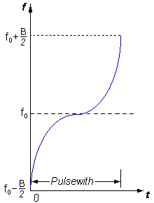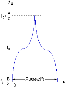 short pulse width. The pulse is frequency modulated, which